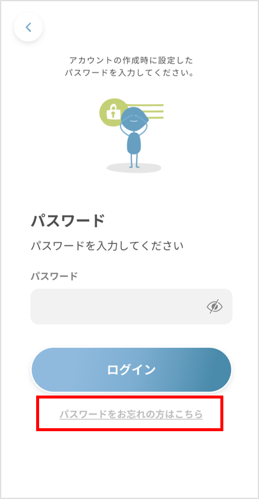 ①「パスワードをお忘れの方はこちら」を押します。