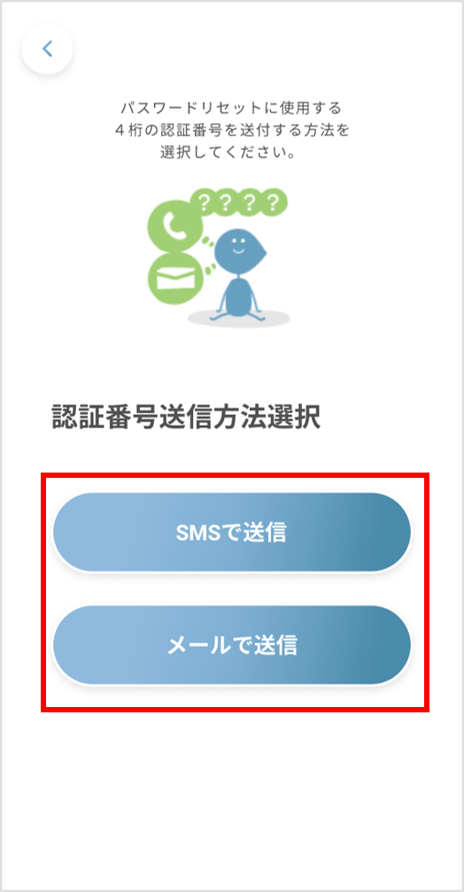 ②認証コードをSMSまたはメール、どちらで受け取るか選択します。