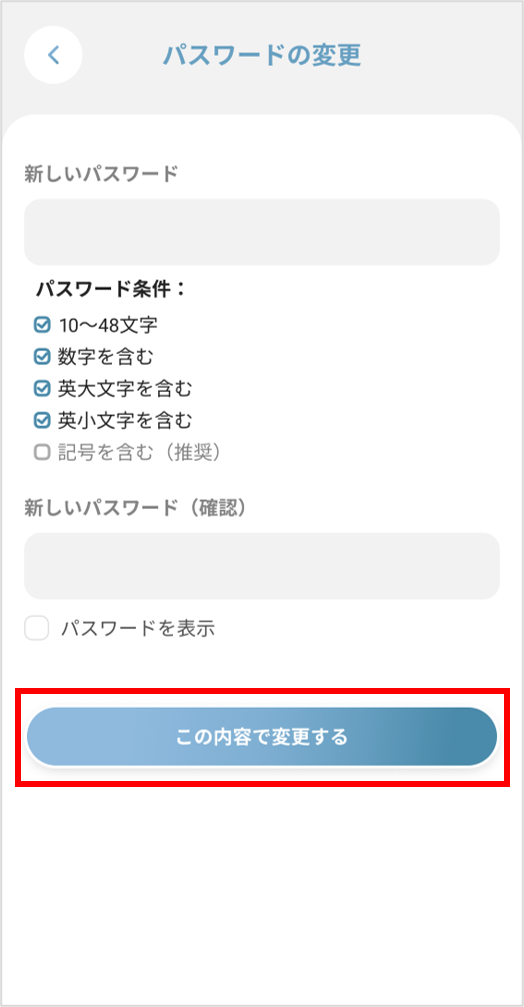 ⑥「この内容で変更する」を押すと、パスワード再設定が完了です。
