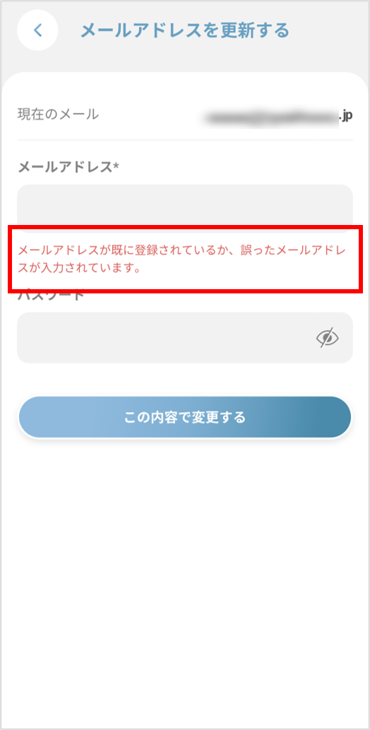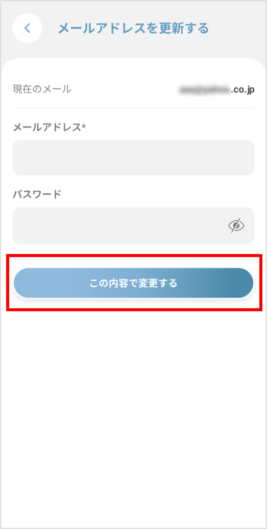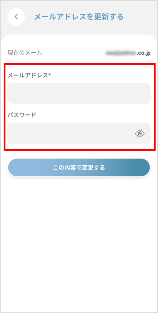 ④新しく設定するメールアドレスとご設定されているパスワードを入力します。