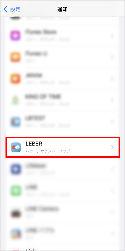 ③通知の中から「LEBER」を探して押します。