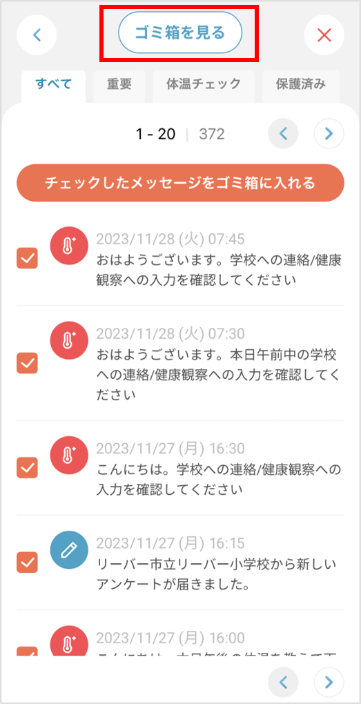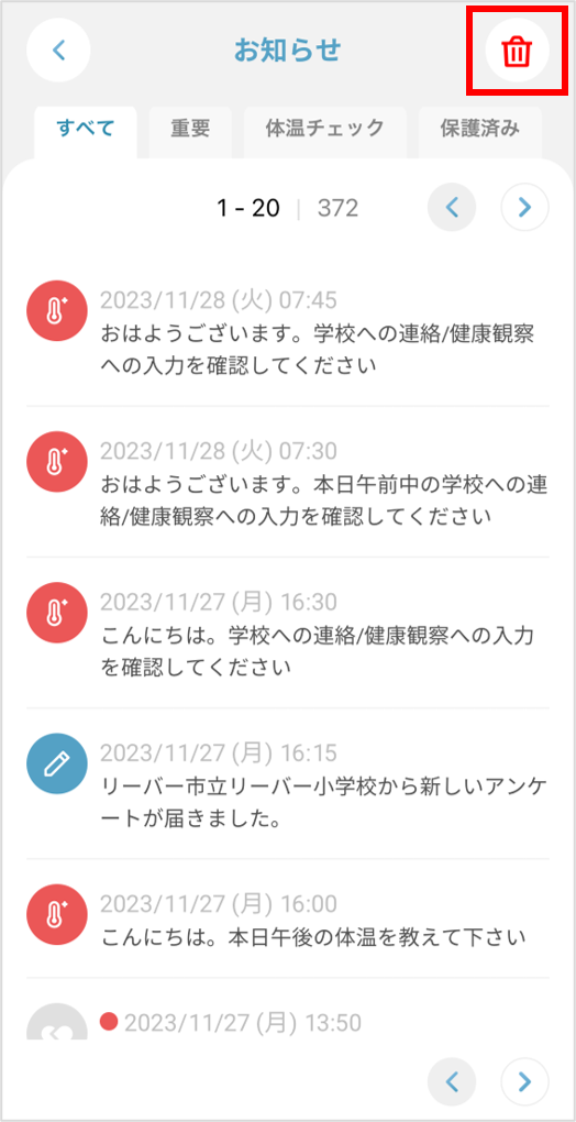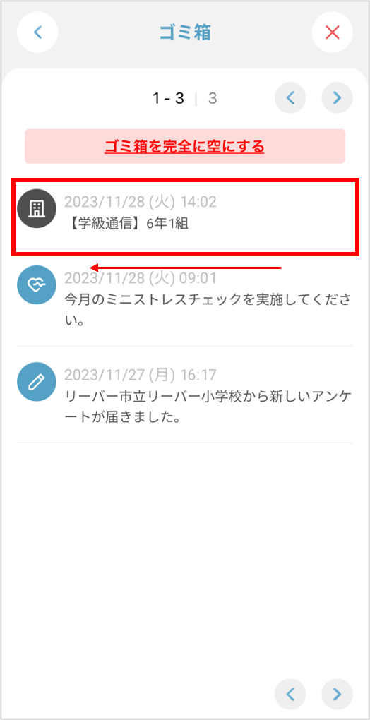 誤ってお知らせを削除してしまった場合、ゴミ箱から復元することができます。