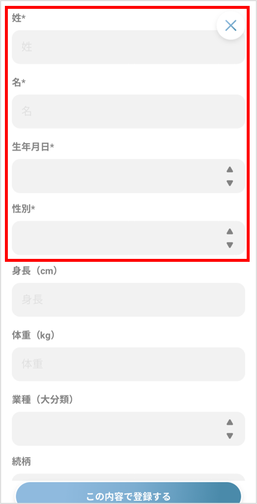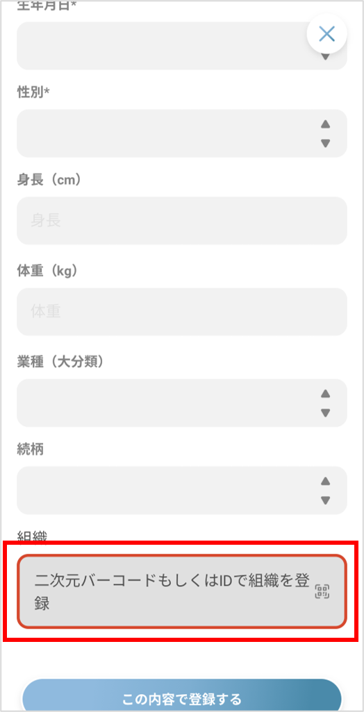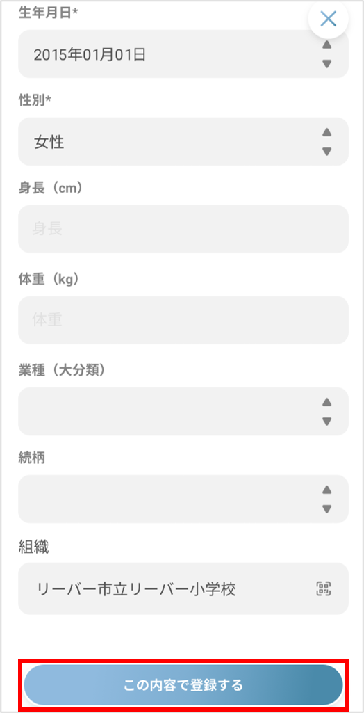 ④お子様の情報を入力し、所属組織の欄を押します。