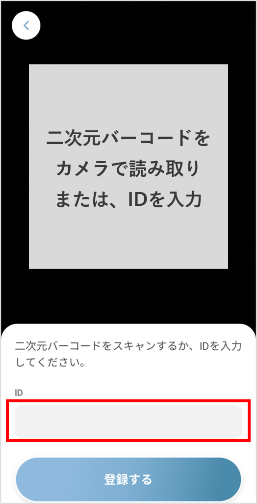 ⑥学校から配布された二次元バーコードを読み取り、またはIDを入力します。