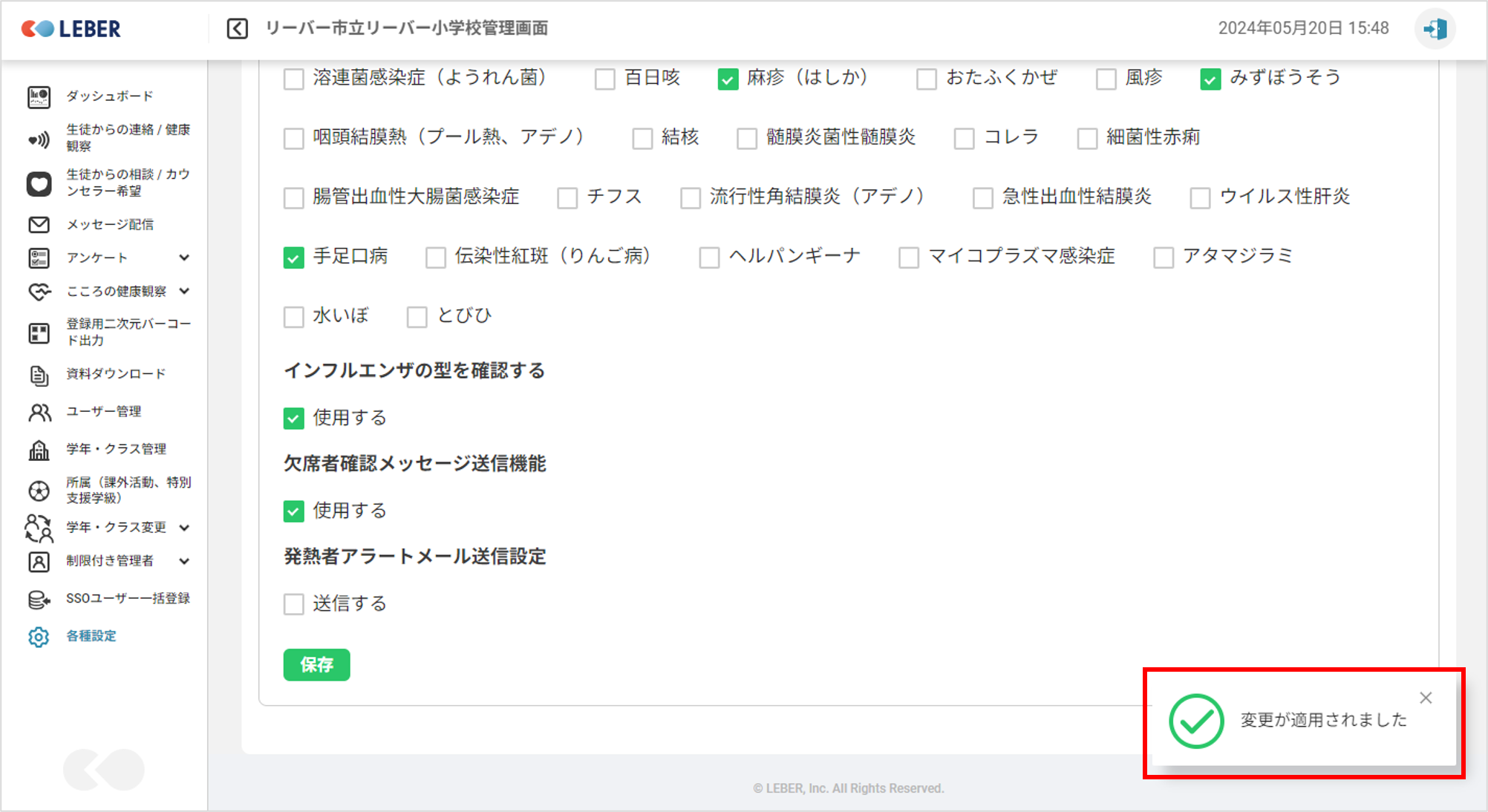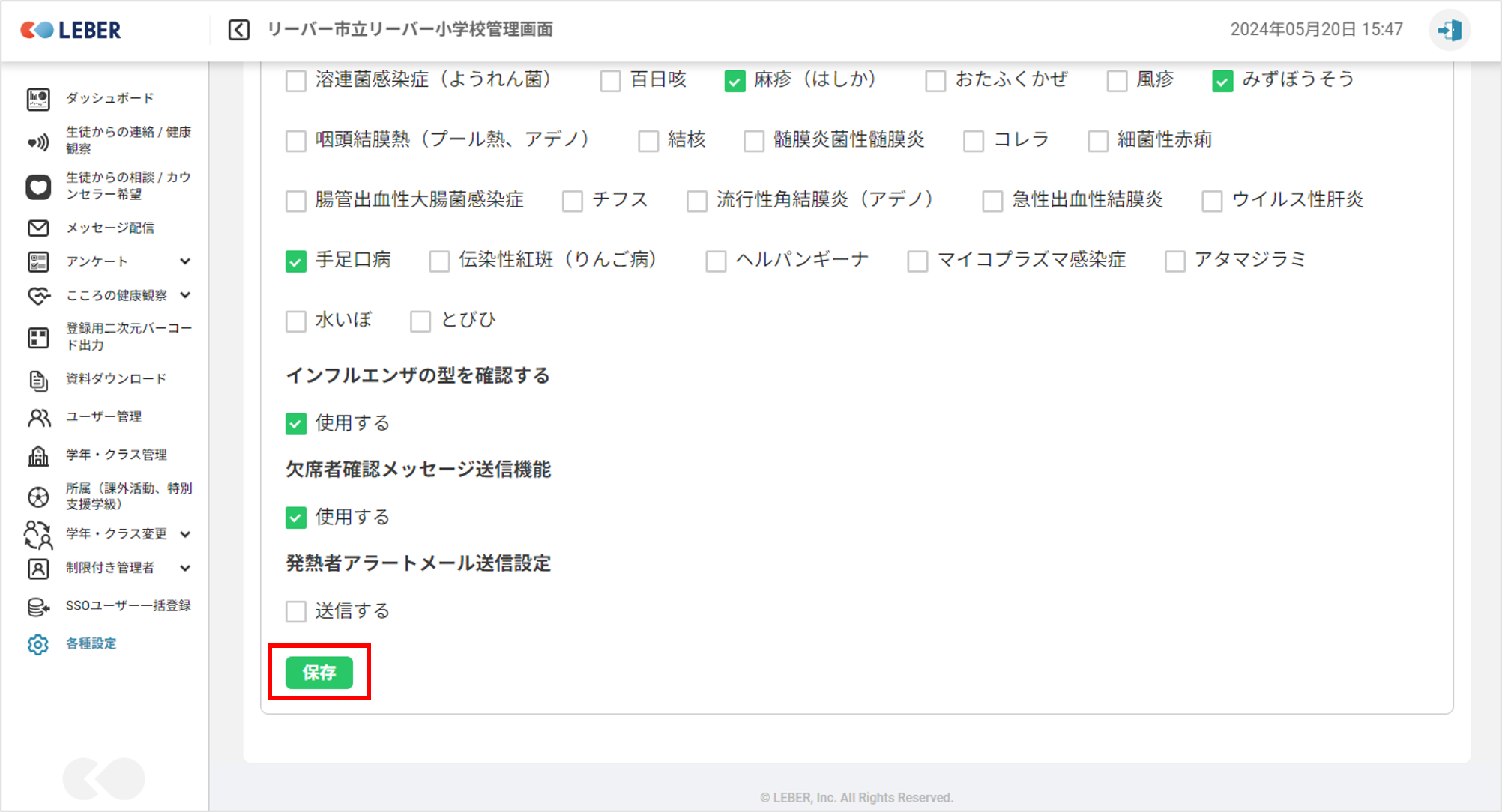 プール授業がある日に、プールに入るかどうかの確認がリーバー上で実施可能となっております。