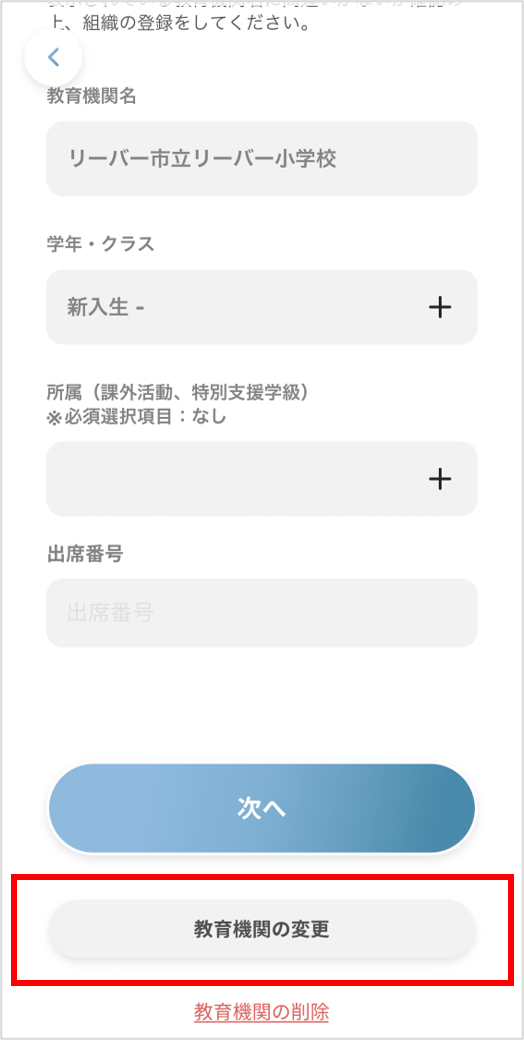 進学や転校で所属学校を変更する場合は以下の手順で操作をお願いします。
