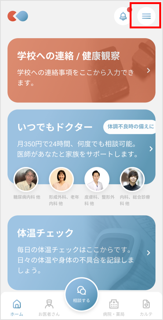 ①リーバーを起動し、右上「≡」を押します。
