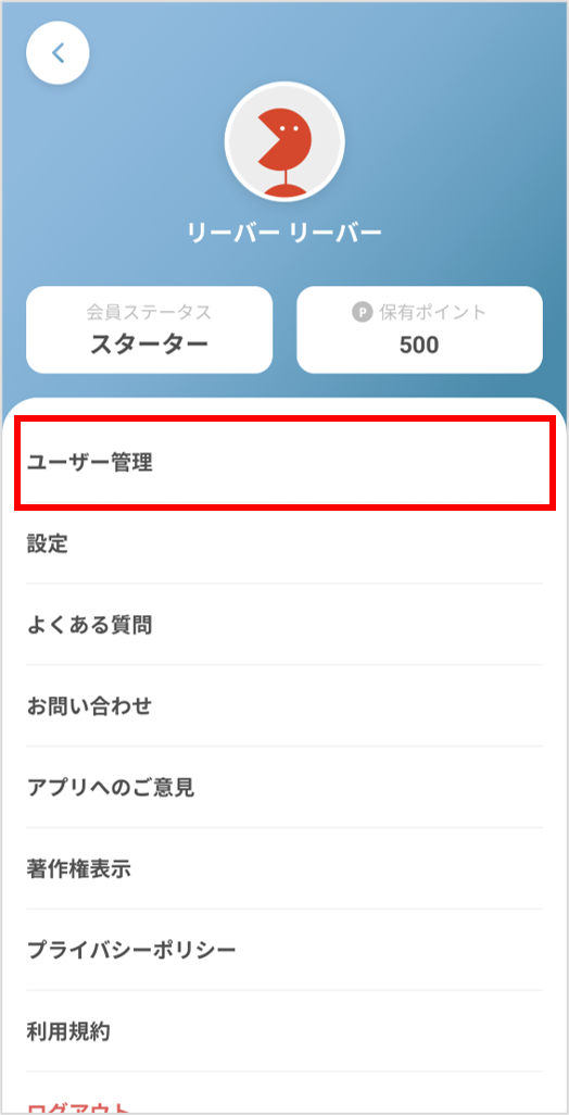 ②「ユーザー管理」を押します。