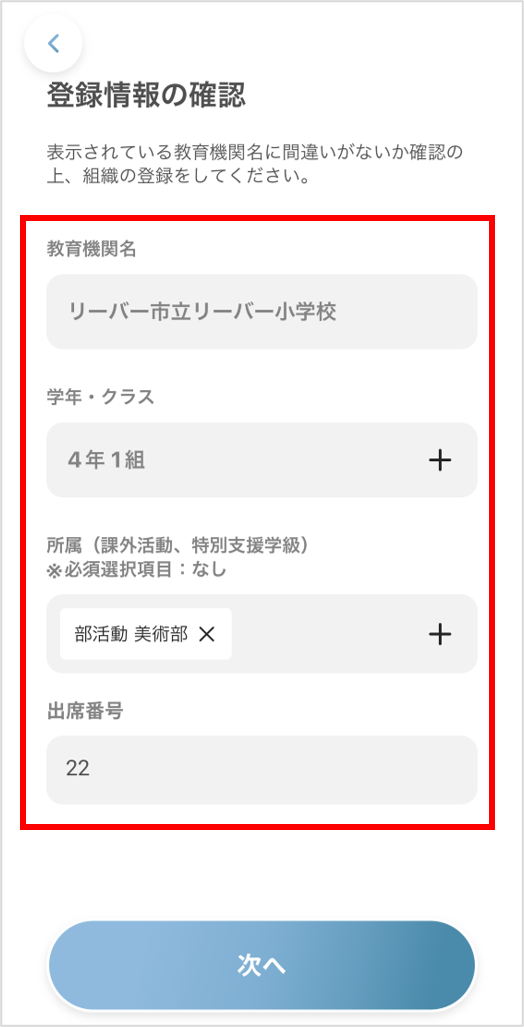 ⑧学年クラスを選択します。出席番号、所属は任意です。