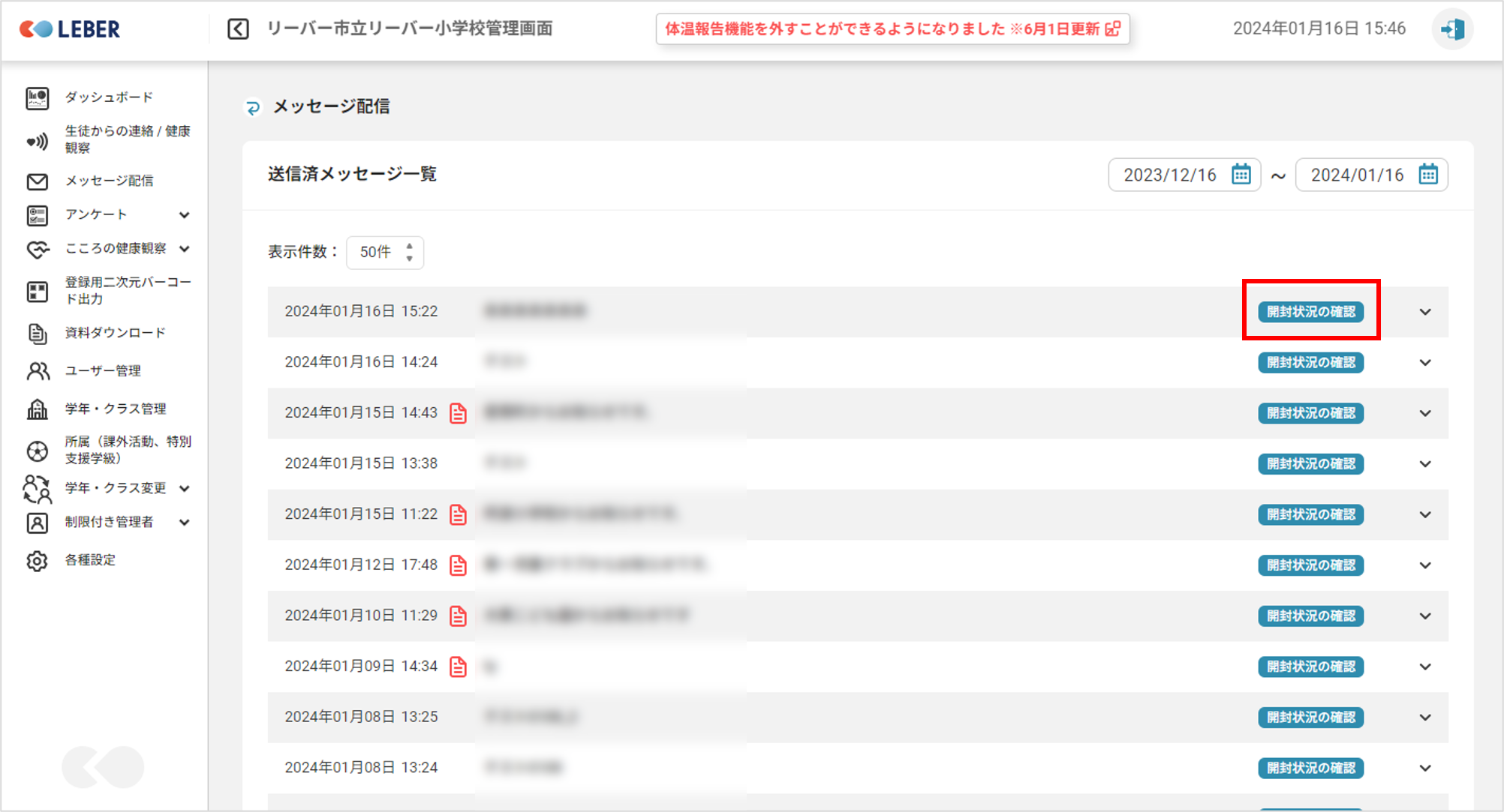 ④開封状況を見る時は「開封状況の確認」をクリックします。