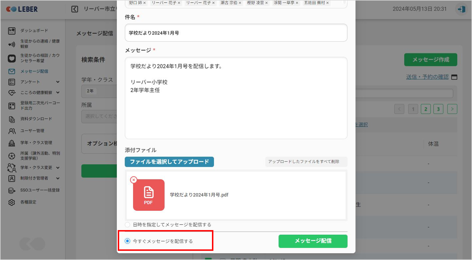 ⑪内容を確認し「今すぐメッセージを送信する」をクリックします。