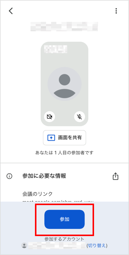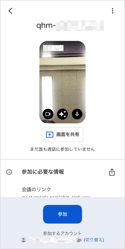②GoogleMeetアプリが起動し、このような画面になれば問題ありません。