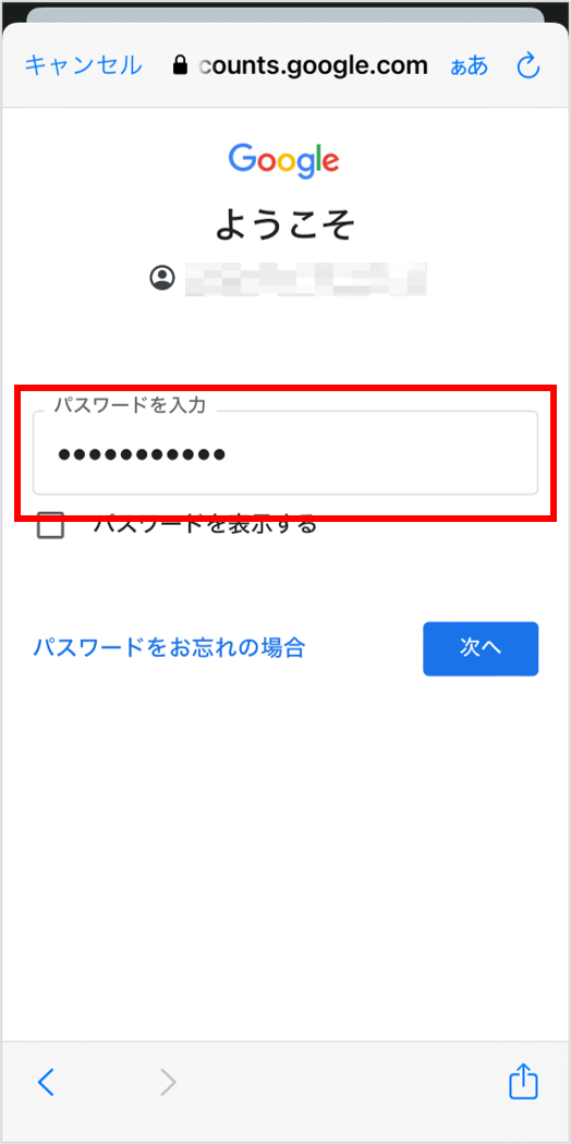 ⑥パスワードを入力します。